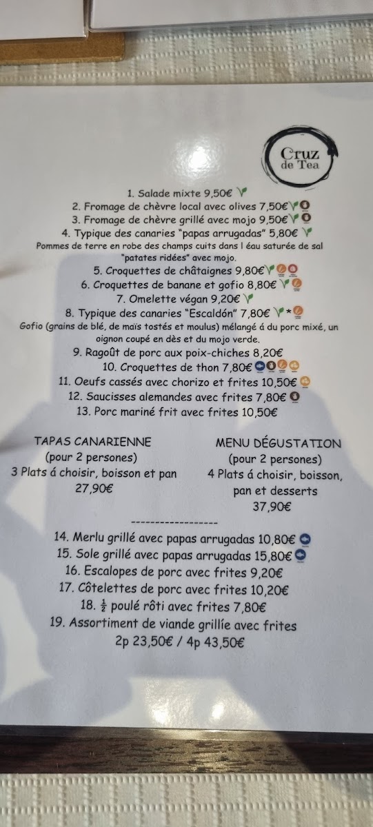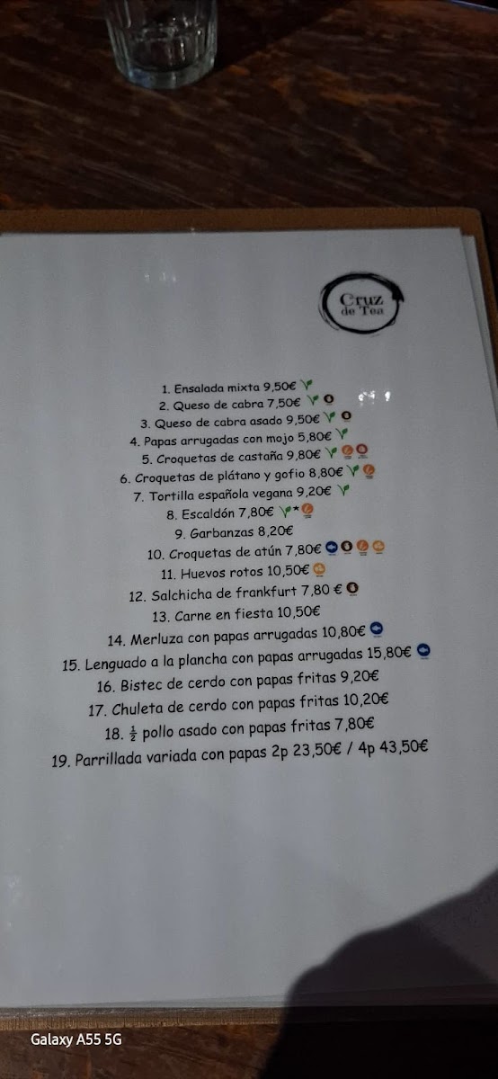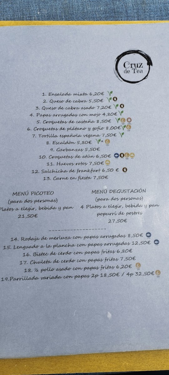Bar Restaurante Cruz de Tea Menu